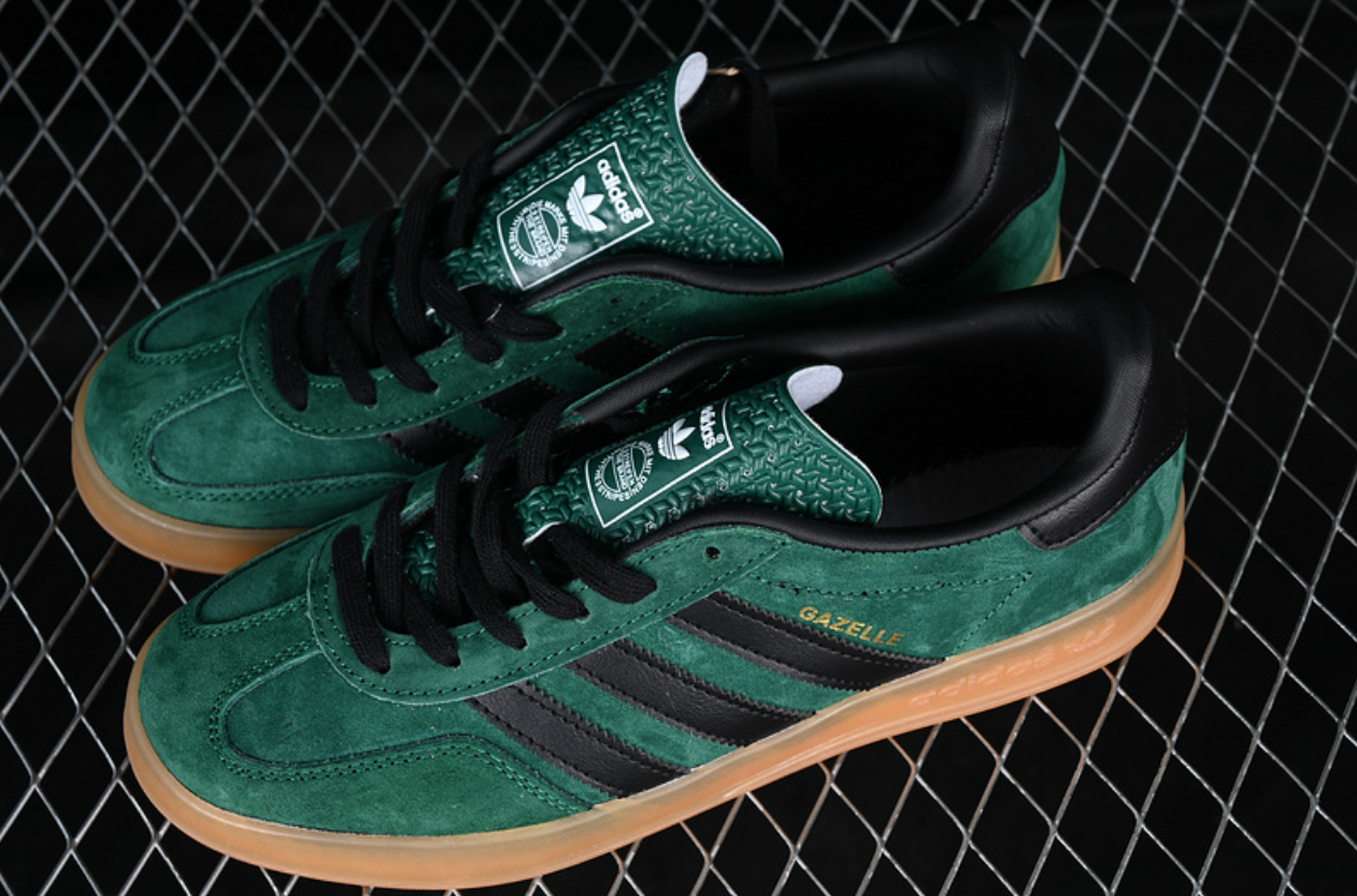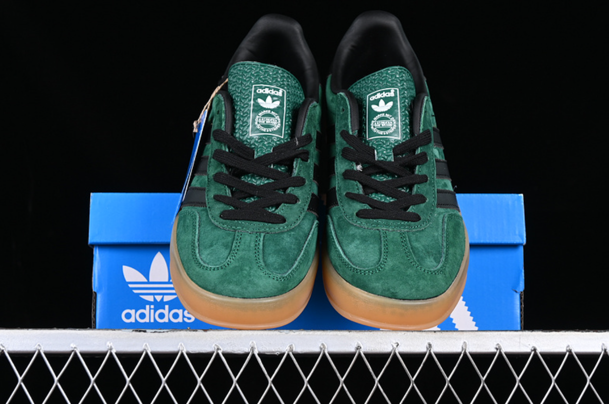 La silueta favorita de los 70s y 80s en un colorway imprescindible. Con su parte superior de gamuza en verde oscuro y el contraste del negro, estas Gazelle Indoor son una declaración de estilo sutil pero audaz. Su diseño minimalista las hace perfectas para cualquier ocasión. El icono que no puede faltar en tu colección.
