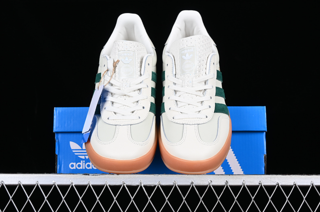 La silueta favorita de los 70s y 80s en un colorway imprescindible. Con su parte superior de piel en blanco y el contraste vibrante del verde y marrón, estas Gazelle Indoor son una declaración de estilo sutil pero audaz. Su diseño minimalista las hace perfectas para cualquier ocasión. El icono que no puede faltar en tu colección.